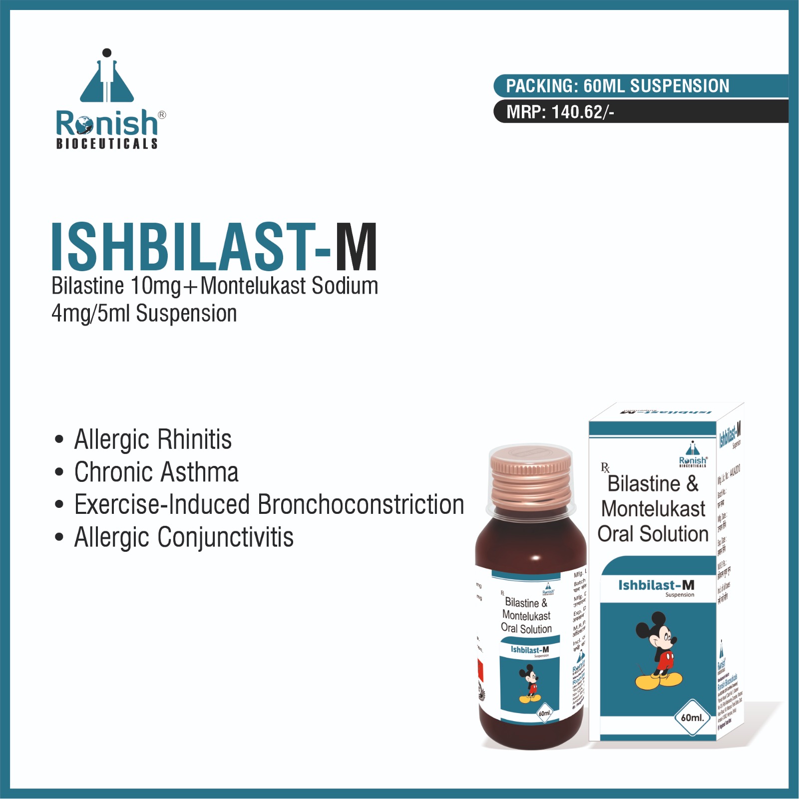 | Composition | BILASTINE 10MG + MONTELUKAST SODIUM 4MG/5ML SUSPENSION |